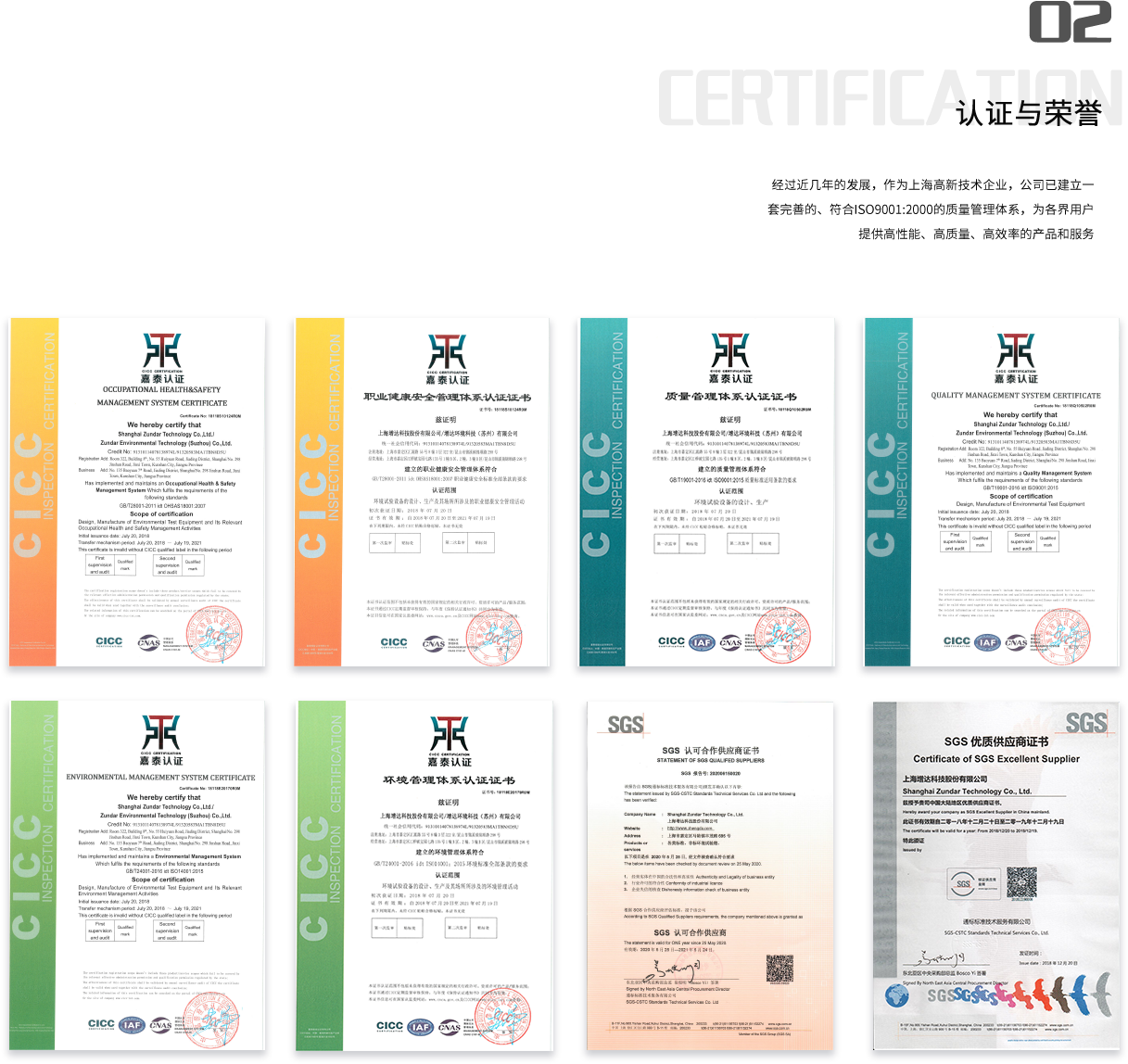 我公司产品覆盖范围广泛,除了能够设计和生产标准的各类温(湿)度试验箱、快速温变(湿热)试验箱、高温试验箱、温度冲击试验箱、盐雾腐蚀试验箱、砂尘和淋雨试验箱等常规的环境试验设备之外。我公司还能够根据客户的需求设计和制造低气压试验箱、深冷试验箱、红外线及全光谱阳光模拟试验仓、步入式温(湿)度试验仓、车入式温(湿)度试验仓、整车排放试验仓、安全气囊点爆试验仓、汽车冷启动试验仓、大型三综合试验仓、VOC检测试验仓、汽车道路模拟试验仓(Four Poster)、MAST 振动台环境试验仓以及环境风洞;